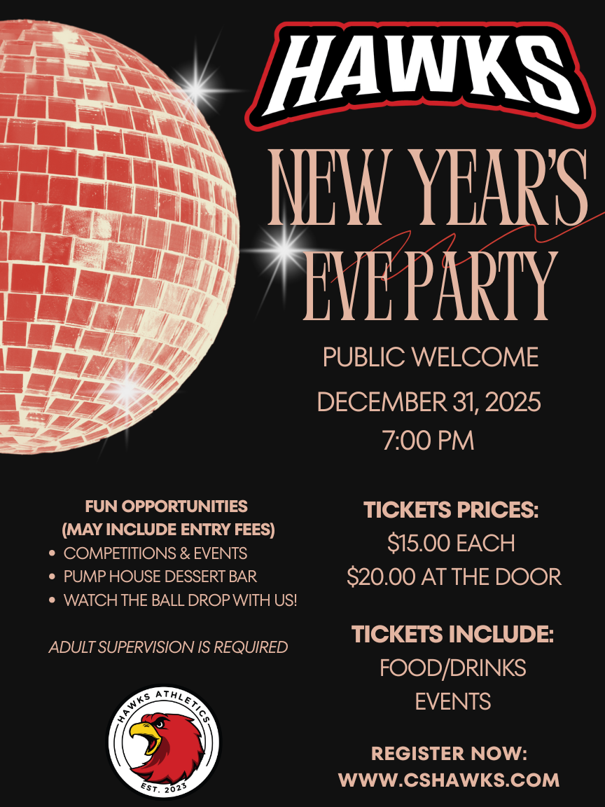 Ring in the New Year with the Hawks! Join us for a fun-filled New Year’s Eve party featuring baseball-themed games, skill challenges, music, food, and a countdown to the New Year. It’s a great opportunity for players and families to celebrate together, reflect on the past season, and get excited for what’s ahead.